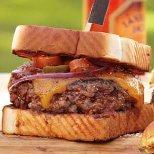 Grilled buttered garlic bread, sprinkled with Parmesan cheese. This is a fantastic turkey sandwich with creamy brie, thinly sliced tart green apples, sweet spicy red pepper jelly, and Furlani garlic Texas toast. Cowboy Burger on Texas Toast with Sausage and Spicy Chili Garlic Maynnaise.